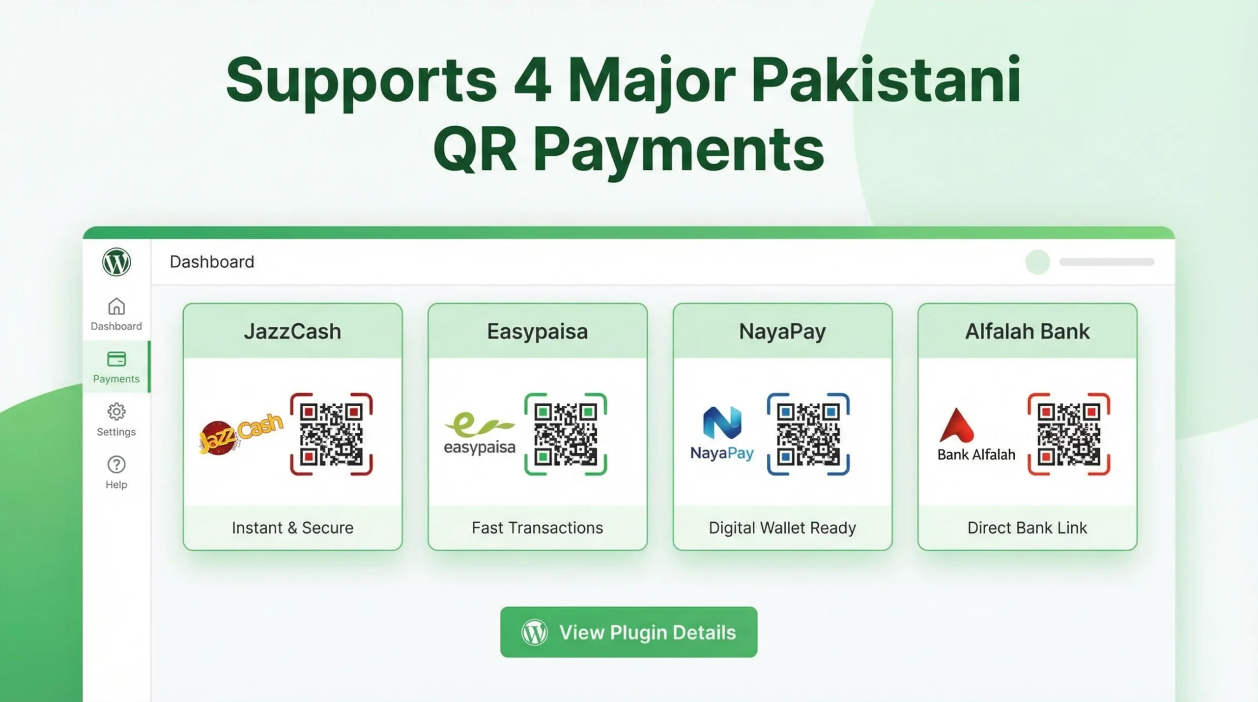 WP QR Pay Pak Pro lets you accept JazzCash, Easypaisa, NayaPay & Alfalah QR payments directly on your WooCommerce checkout.